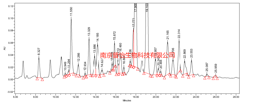 É«Æ×ͼ»ÆÍªÉ«Æ×·å¼ÓÒÔ±êʶ£¬¹²¼Æ±êʶ³ö29¸ö»ÆÍªÀàÉ«Æ×·å ´Ó·Å´óͼÖпÉÒÔ¿´³ö£¬¸Ã²¿·ÖÈÔÓÐ5¸ö·Ç»ÆÍªÀ໯ºÏÎµ«´Ó·å Ãæ»ý¼°·å¸ßÅжϣ¬¸ÃÀ໯ºÏÎïÕ¼±ÈºÜС¡£